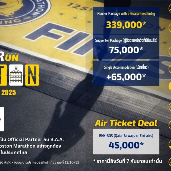 เมื่อได้ยินคำว่า “Boston Marathon” มันคือที่สุด มันคือความฝันของใครหลายๆ คน ที่คิดว่าจะได้มาวิ่งบนเส้นทางนี้สักครั้งในชีวิต LET’S RUN THE WORLD จะพาคุณไปสัมผัสตำนานของเส้นทางมาราธอนประจำปีที่เก่าแก่ที่สุดในโลกไปด้วยกัน เส้นทางแบบ point-to-point ที่เปิดประเดิมด้วยทางลงเขาที่รวดเร็ว และทางลาดที่อาจจะทำให้เราตายใจ ต่อด้วยเนินเล็กใหญ่แบบไม่มีพัก จนไปถึงเนินลูกสุดท้าย “Heartbreak Hill” ก่อนที่จะเข้าสู่เส้นชัยอันทรงเกียรติในเมือง Boston ปิดท้ายด้วยปาร์ตี้ฉลองชัยชนะพร้อมเพื่อนนักวิ่งและทีมงาน