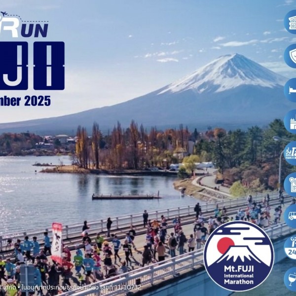 MOUNT FUJI MARATHON 2025 รายละเอียดทั้งหมด คลิกที่นี่ ในปี 2025 มีทั้งหมด 3 ระยะ 42K, 17K, 11K เส้นทางของระยะ full marathon วิ่งรอบ 2 ทะเลสาบ (Kawaguchiko Lake และ Saiko Lake) ชมวิวทะเลสาบตลอดสองข้างทาง แถมได้เห็นภูเขาไฟฟูจิแบบหลายมุมเลยทีเดียว FULL MARATHON ประมาณ 42.195 KM AROUND KAWAGUCHIKO ประมาณ 17 KM FUN RUN ประมาณ 11 KM สิ่งที่รวมอยู่ในแพ็กเกจ - Guaranteed Entry - ที่พัก FUJI PREMIUM RESORT 3 วัน 2 คืน พร้อมอาหารเช้าและอาหารเย็น รายละเอียด: อาหารเช้า ( 14/12,15/12 ) และ อาหารเย็น ( 13/12 ,14/12 ) - รถ รับส่งไปกลับจาก Tokyo - รถ shuttle bus ไปยังจุดปล่อยตัว - กิจกรรมต่างๆ - After-Party Celebration Dinner - ประกันเดินทาง คุ้มครองอุบัติเหตุและการเจ็บป่วย ทุนประกัน 2 ล้านบาท - ทีมงาน LET'S RUN THE WORLD ดูแลตลอดทริป และ online สิ่งที่ไม่รวมอยู่ในแพ็กเกจ - ตั๋วเครื่องบิน และการเดินทางทั้งหมด - มื้ออาหารที่ไม่ได้ระบุในแพ็กเกจ