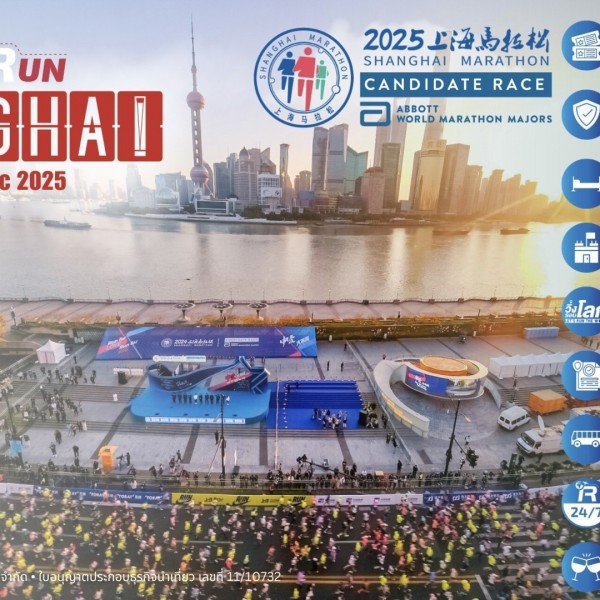 SHANGHAI MARATHON 2025 28 Nov - 1 Dec 2025 สิ่งที่รวมอยู่ในแพ็กเกจ บิบสำหรับ Shanghai Marathon 2025 ที่พัก 4 วัน 3 คืน พร้อมอาหารเช้า One-day tour program พร้อมอาหารกลางวัน After-Party ฉลองชัยชนะ ทีมงาน LET’S RUN THE WORLD อำนวยความสะดวก สิ่งที่ไม่ได้รวมอยู่ในแพ็กเกจ ตั๋วเครื่องบิน และการเดินทางทั้งหมด มื้ออาหารที่ไม่ได้ระบุในแพ็กเกจ ประกันเดินทาง (เลือกซื้อเพิ่มได้ตามจำนวนวันที่ต้องการ) ภาษีมูลค่าเพิ่ม 7% และค่าภาษีหัก ณ ที่จ่าย 3% ค่าใช้จ่ายส่วนตัวต่างๆ เช่น ค่าโทรศัพท์ ค่าซักรีด มินิบาร์ เครื่องดื่มและอาหารที่ไม่ได้ระบุในแพคเกจ ค่าของที่ระลึก ฯลฯ ข้อมูลที่พัก The Golden Tulip Bund New Asia Hongkou District 422 Tiantong Road 200085 Shanghai พิกัด: https://maps.app.goo.gl/D5dvtNsPRb1ovSFi7 นำทีมโดย “พี่เชษฏ์” จากเพจ “วิ่งรอบโลก: Running the World” มีประสบการณ์จากสนามมาราธอนทั่วโลกในหลายประเทศ เป็น Six Star Finisher และ Seven Continents Finisher สามารถให้คำปรึกษาเรื่อง World Marathon Majors และงานวิ่งต่างประเทศได้อย่างละเอียด พร้อม ทีมงานผู้เชี่ยวชาญด้วยประสบการณ์ในธุรกิจนำเที่ยวมามากกว่า 10 ปี